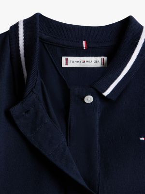Add polish to warm-weather looks with this sleeveless polo dress, featuring a tipped collar and armholes for a preppy finish.