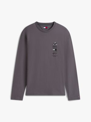 This long-sleeved T-shirt delivers a loose, relaxed fit and an adventurous spirit with its bold, tonal outdoors graphic on the back.