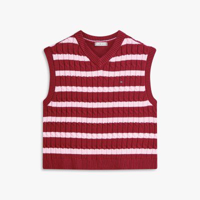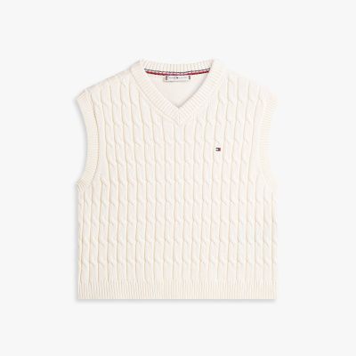Make preppy layering effortless with this pure cotton sweater vest, featuring a traditional cable design in a luxe mid-gauge knit.