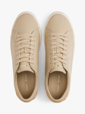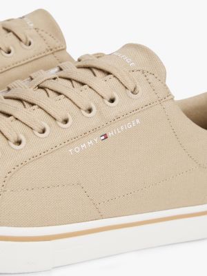 The pure cotton canvas uppers bring an extra laid-back feel to the sleek low-top silhouette of these classic lace-up trainers.