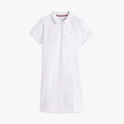 Bring sporty flair to relaxed days with this short-sleeved polo dress, featuring a neat collar and playful scalloped trims.