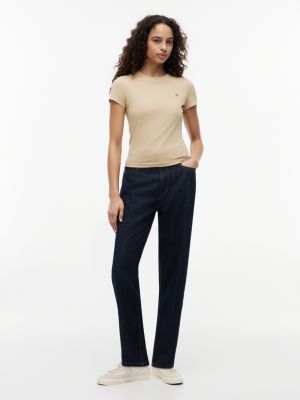 Flag Embroidery Slim Crew Neck T-Shirt