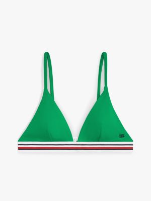 This triangle bikini top features removable padding for an adjustable shape, while the global stripe underband creates a statement poolside look.