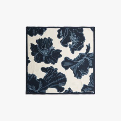 This square scarf is woven from pure silk twill and features an illustrative print that showcases sophisticated, modern florals.