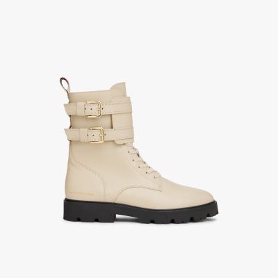 Lean in to the biker aesthetic of these cleated leather boots, designed with a lace-up front and buckled straps at the ankle.