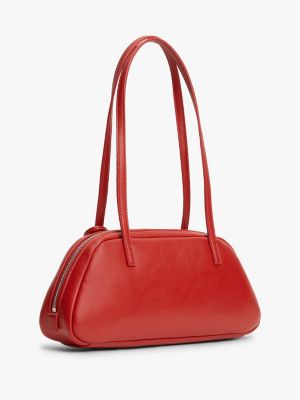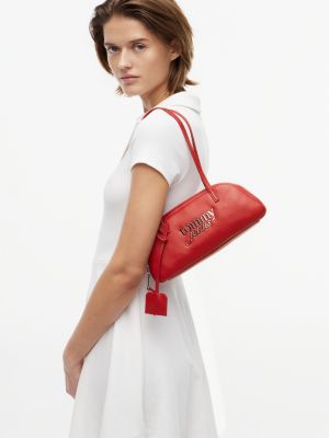 This shoulder bag has a distinctive look that's defined by its long handles, shallow silhouette and striking polished metal logo.