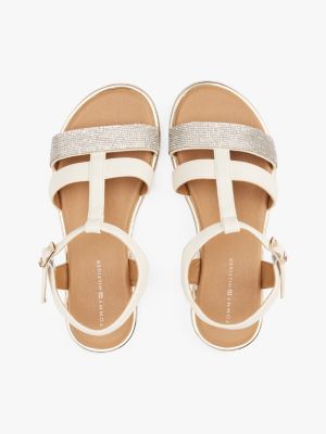 Prepare to dazzle at parties in this sparkling pair of sandals, enhanced with shimmering metallic accents and toe straps.