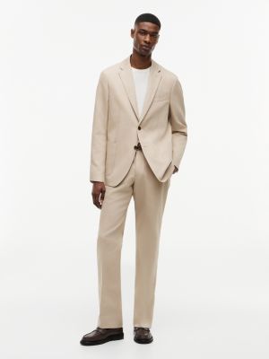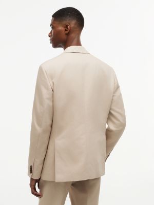 This tailored blazer is crafted from a premium blend of linen and cotton gabardine fabric for an airy feel and elegant appearance.