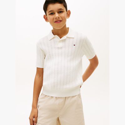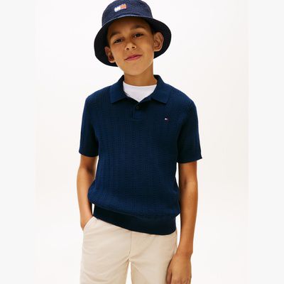 A stylish open-knit texture elevates this pure cotton polo shirt, making it a great choice for heading out to dinner on holiday.