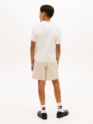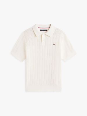 A stylish open-knit texture elevates this pure cotton polo shirt, making it a great choice for heading out to dinner on holiday.