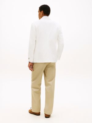This pure cotton single-breasted blazer brings a refined final layer to outfits, with its denim-like appearance and signature tape lapel pin.
