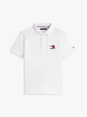The wavy flag is a fun addition to this pure cotton pique polo shirt with a timeless button placket and high-low hem.