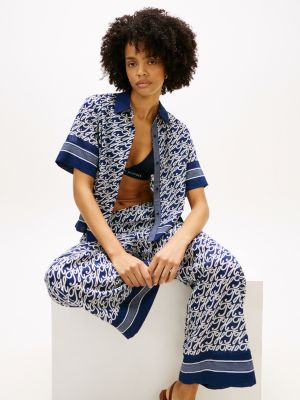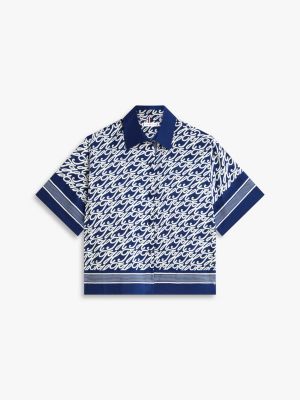 Cover up your swimwear with this elegant printed shirt, crafted in a luxe cotton and silk voile fabric with wide, short sleeves.