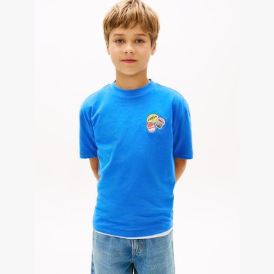 Branded sticker-inspired graphics bring colour and charm to this crew-neck T-shirt, while the pure cotton jersey fabric ensures a comfy fit.