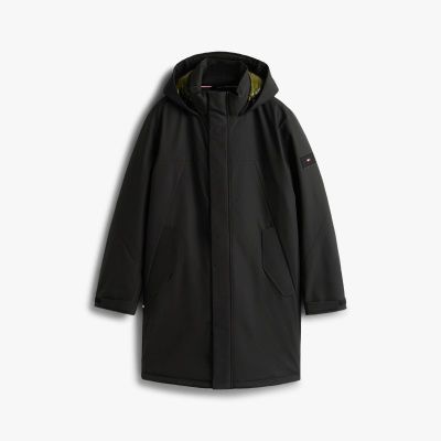 A non-removable hood, water-repellent finish and thermal insulation make this padded parka a must-have for keeping warm and dry in unpredictable weather.