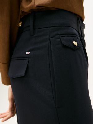 These sophisticated suit trousers, crafted from a premium wool blend with a little stretch, feature gold-tone button detailing for a luxurious touch.