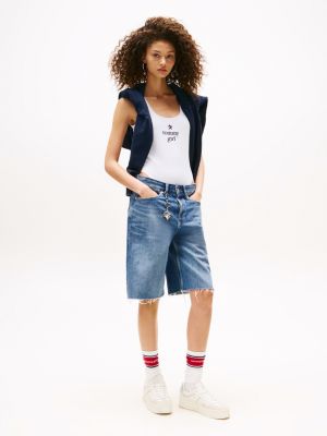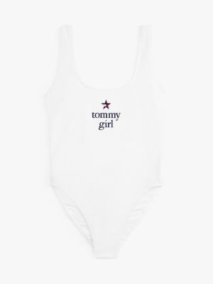 This archive-inspired swimsuit pairs a high-cut leg with a daring low back, and is finished with a Tommy Girl star logo.