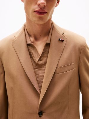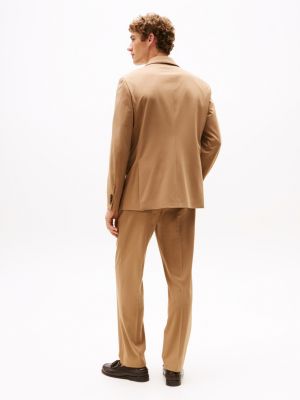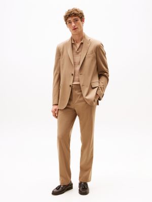 For traditional smart with modern comfort, this two-piece suit has been cut from a sleek stretch twill that's enriched with luxurious wool.