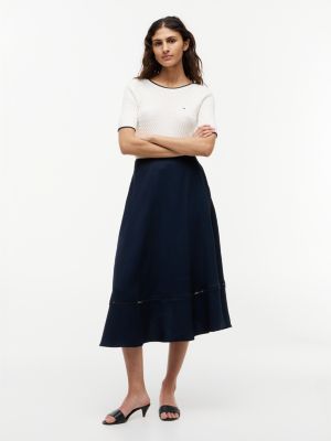 The maxi skirt is experiencing a fashion renaissance, and a long Tommy Hilfiger skirt will take you from the office to the weekend in seconds. Make an impression by pairing a mini skirt with ankle boots and a leather biker jacket for an edgy look. Or meet in the middle with a classic midi skirt, a style that is tailor made for day-to-night dressing. Pair a tartan skirt with a crisp white shirt for a nod to traditional dressing with a uniquely fashionable twist. Don’t forget about our A-Line styles, an all-time figure flattering cut with high waist bands in versatile mini or midi lengths.